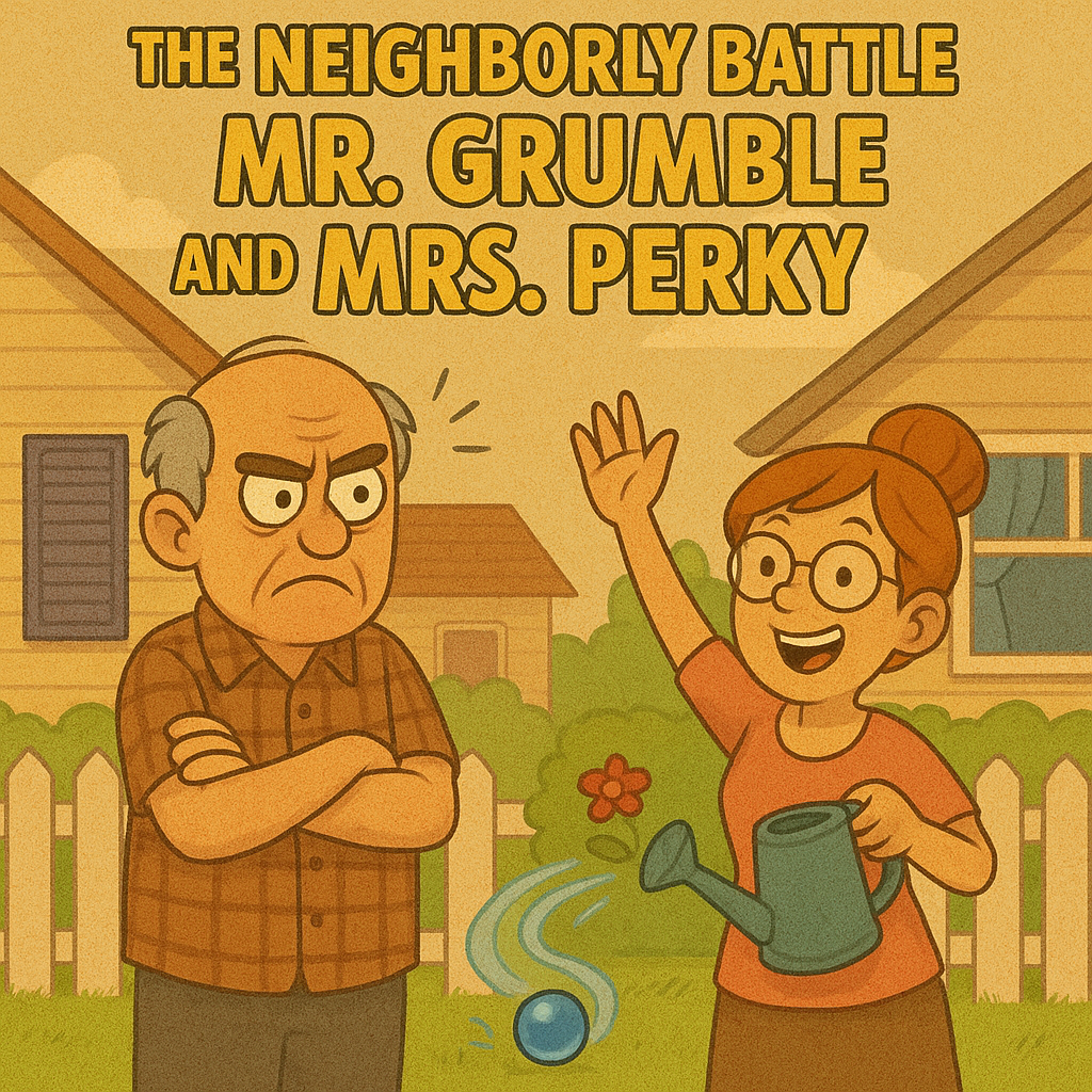 From that day on, the feud mellowed into a friendship—an odd one, of course. Mr. Grumble still frowned at everything, and Mrs. Perky still sparkled like a caffeinated sunrise. But they now shared muffins, gardening tips, and the occasional water-droplet accident.